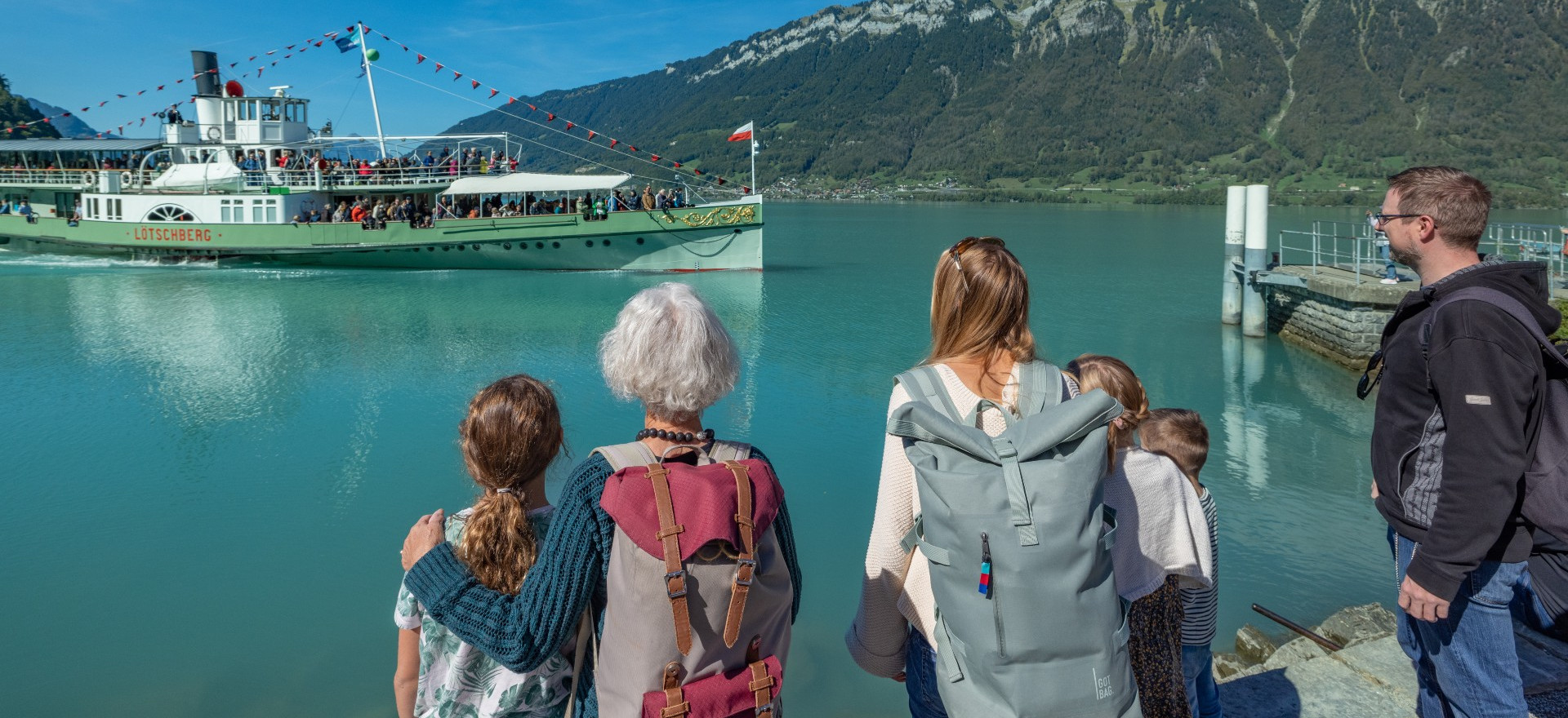 Les bateaux partent à côté des gares d'Interlaken West, Interlaken Ost, Thoune et Brienz. Des parkings de bus pour l'embarquement et le débarquement se trouvent à proximité des plus grandes stations de bateau. Ainsi, vous pouvez nous rejoindre facilement avec votre groupe.